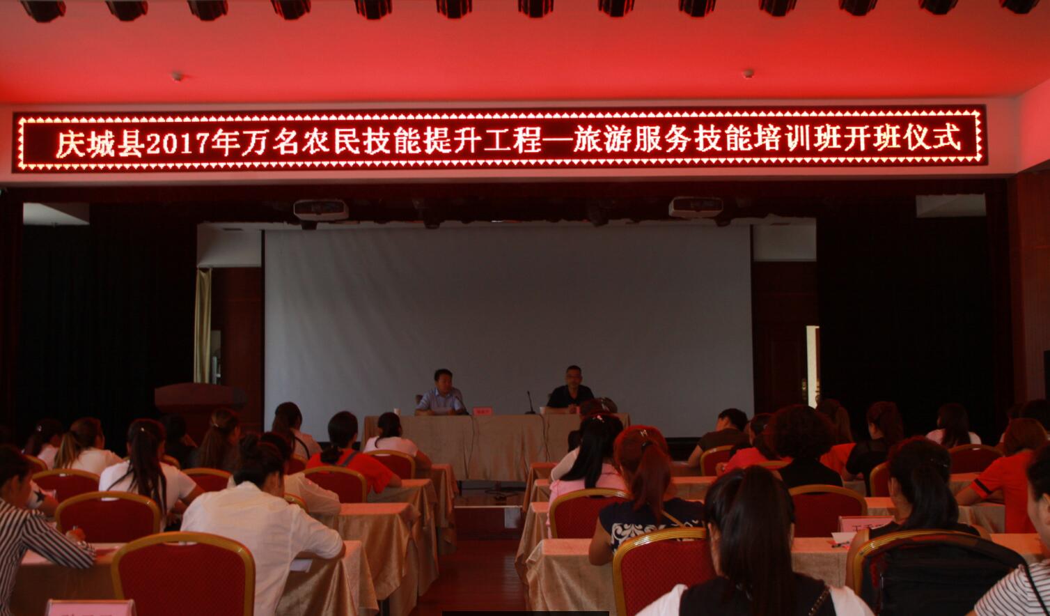 8月1日上午,由县旅游局举办的庆城县2017年“万民农民工技能提升工程—旅游服务技能培训班”正式开班,此次50名参训人员都是来自全县各乡镇建档立卡贫困户中有学习旅游服务技能意愿的农户。采取课堂理论+外出考察+实践操作的方式进行培训,并邀请县职业技术中学高级教师武超老师进行旅游服务技能中接待礼仪等方面的知识讲解。