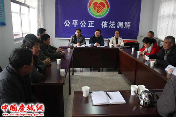 3月23日,庆城镇司法所组织十里坪村包村领导、村干部以及该村18户涉及群众就征地拆迁相关事宜进行讨论。