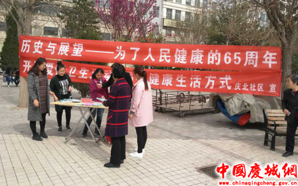 2017年4月是全国第二十九个“爱国卫生月”,为动员全社会广泛参与爱国卫生工作,倡导文明健康的生活方式,全面提高居民文明卫生素质,庆北社区于4月13下午,在北区广场开展了以“历史与展望——为了人民健康的65周年”为主题的集中咨询、健康科普宣传活动。
