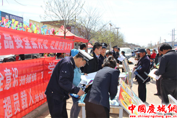 4月21日,卅铺食药监所联合综治办、司法所、交警队、派出所、交管站单位人员在阜城街道开展饮食用药安全宣传活动。