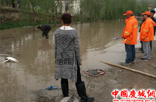 5月3日早上8:30,庆北社区防汛排查小组在辖区继续排查,发现东环路水塔以南涵洞被堵,雨水沉积,几处房子因受影响而导致裂缝,存在安全隐患,社区负责人将情况如实上报,该镇政府负责人一行来到现场查看和了解灾情情况,现场指挥,要求首先保证人员安全问题,将受灾群众组织先行撤离,同时联系公路段,动用泵对积水进行全面清理。