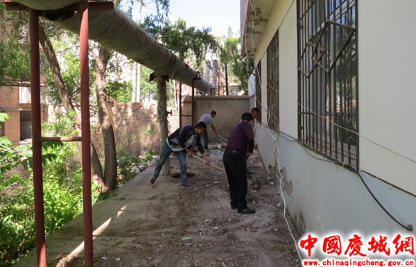 此次劳动的地点在司法所办公楼后面,因长时间没有清理,办公楼后面已是杂草丛生,遍地垃圾。29名社区矫正人员在社区矫正干警的带领下,分工合作、互相配合,经过三个多小时才将地面上的杂草和垃圾清理干净,给人一种焕然一新的感觉。
