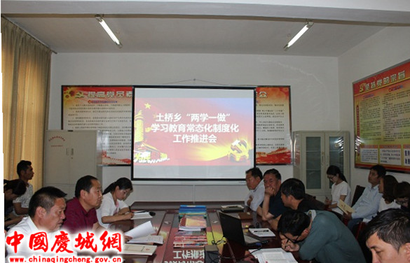 会上,传达了市、县关于推进“两学一做”学习教育常态化制度化工作要求,就推进土桥乡“两学一做”学习教育常态化、制度化作了安排部署。
