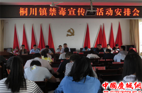 为培养和提高群众自觉抵制毒品侵害的能力,努力推进禁毒工作常态化,营造良好的禁毒知识宣传氛围, 全力打造无毒乡镇,桐川镇积极影响国家、省、市、县有关禁毒工作的文件精神,精心部署禁毒宣传月活动,6月14日,召开禁毒宣传月活动安排会,吹响了活动号角。
