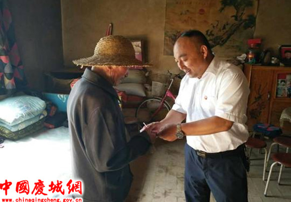 刘宝平先后来到安家寺村范滩自然村的老党员藏广智和驿马村田城自然村的卸任村支书王克明家,为他们送去了慰问金和庆祝建党96周年的祝福,让他们感受到到党的关怀和温暖。