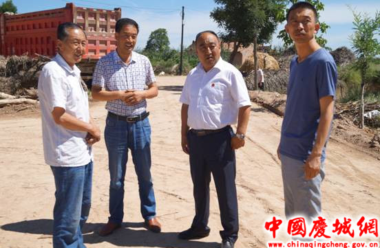 7月7日,驿马镇党委负责人在安家寺村督查村组道路建设情况,村“两委”主要负责同志一同督查。