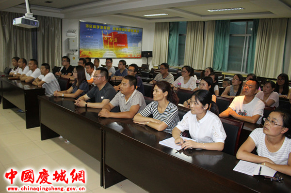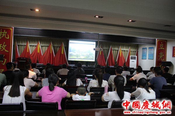 庆城镇党委、镇政府统一部署,集中安排,7月17日晚八时,组织全镇干部在镇四楼会议室集中收看专题片,该镇党委书记主持观看。