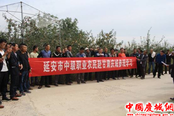 9月18日,陕西省延安市宜川县组织60名果农到庆城县高楼乡太乐村苹果标准化管理示范园进行了参观学习。