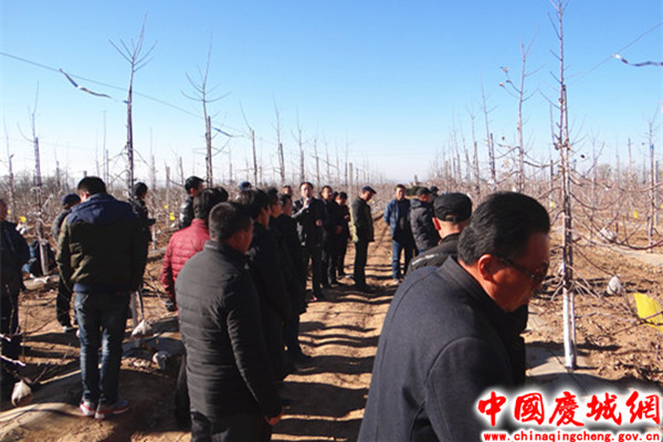 据悉,玄马镇樊庙村,以前产业结构单一,经济发展滞后,属于典型的“空壳村”。为实现强村富民战略,近年来,村“两委”通过不断的商讨研究,提出了“11551”苹果产业发展思路,即:注册成立苹果协会1个、建成矮化密植标准化示范园1处、带动群众发展苹果500亩,丰产后实现户均年收入5万元,集体创收10万元。一个以村党支部为引领的“支部+协会+基地+农户”的脱贫成功模式正在樊庙村逐步得到实践。参观了解了樊庙村规范化的果园管理之后,考察团全体成员都很赞叹,在与本乡的苹果产业发展和管理做比较,深感自己差距很大,果业技术员都表示回去以后要好好学习,带动指导本乡群众大力发展苹果产业,提高果园管理水平。