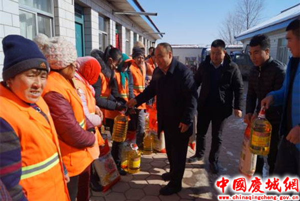 寒冬腊月,冷风刺骨,驿马镇环卫工人仍顶着严寒坚持工作,守护着城镇居民的环境卫生,为了感谢他们为驿马环境秩序做出的努力与贡献,1月31日,驿马镇组织慰问小组开展春节慰问送温暖活动,为环卫工人送去米、油生活用品。