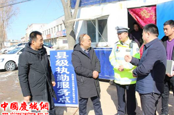 检查组到东滩村三岔路口春运检查点,查看了执勤点的工作环境、执勤工作台账,并与司机亲切交谈,叮嘱他们要谨慎驾驶,确保安全。