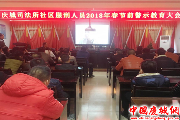 庆城司法所组织社区服刑人员召开2018年春节前警示教育大会
