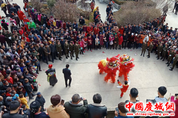 上午10时,在锣鼓、鞭炮的轮番交替声中,社火表演正式开始,街道两侧早已是人山人海。在彩旗引领下,舞龙队飞腾跳跃;舞狮队则上演扑跌、登高、朝拜等技巧;秧歌队、舞蹈队的演员们踏着音乐的节拍,欢快地敲着、扭着,洋溢着活力,舞出了群众的幸福心声,赢得现场观众的阵阵掌声。