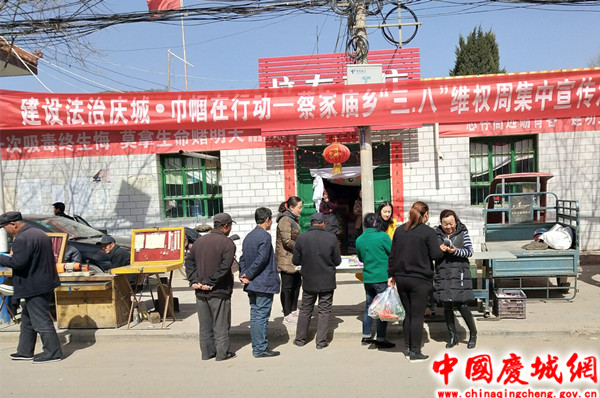 为维护妇女合法权益,3月8日,蔡家庙乡妇联联合乡司法所、乡卫计中心等部门人员,在蔡家庙街道开展了以“建设法治庆城、巾帼在行动”为主题的法律维权宣传活动。