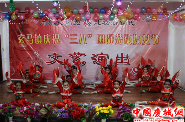 文艺演出由贾桥小学学生表演的舞蹈《中国姑娘红》拉开序幕,汇演中诗朗诵《天下女人》、快板《脱贫致富奔小康》、相声《开房》、舞蹈《康定情歌》等节目将演出一次次推向高潮,赢得了现场观众阵阵掌声。通过本次庆“三八”文艺汇演,既丰富了妇女同胞的文化生活,又营造了浓厚的节日氛围,充分展示了玄马女性自尊、自信、自立、自强的新时代面貌。