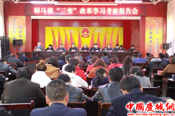 3月19日,驿马镇召开“三变”改革学习考察专题报告会,该镇党委书记结合贵州省六盘水市钟山区、水城县,安顺市平坝区、西秀区,遵义市湄潭县和仁怀市茅台古镇等地考察学习作了专题报告,镇村全体干部共160余人聆听了报告。
