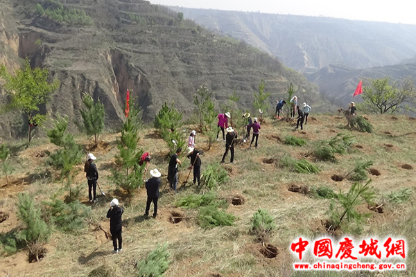 植树现场,所有干部职工热情高涨、干劲十足,一派热火朝天的劳动景象。大家挥汗如雨,埋头植树,相互配合,有的挥锹铲土,有的扶苗培土,有的提桶浇水,忙的不亦乐乎。经过3小时的辛勤劳作,共栽植油松524棵,为原来光秃秃的山坡增添了一片新绿。