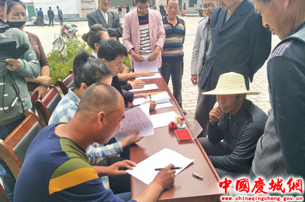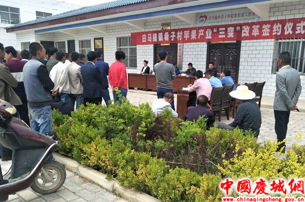签约仪式会上,传达了全县农村“三变”改革相关文件精神;介绍了企业、合作社基本情况;详细解读了“三变”改革入股农户分红比例、农资赊销及苹果保险相关政策;对白马铺镇“三变”改革入股合同相关条款进行了详细解释;庆城县金诚果蔬有限公司、金城果业农民专业合作社和近百名入股农户在镇司法所工作人员的见证下现场签订了白马铺镇“三变”改革入股合同。