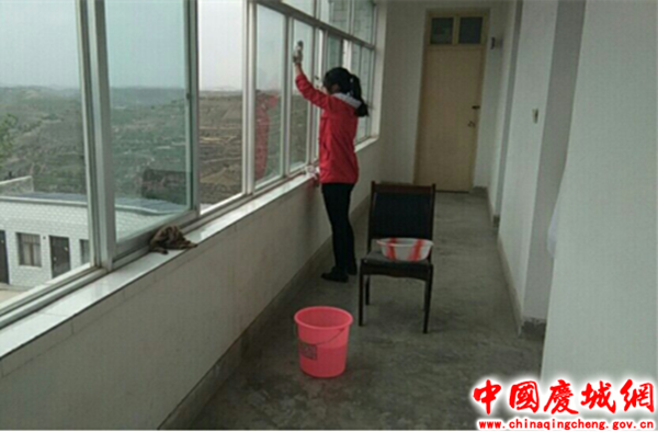 行动中,全体干部拎起水桶,拿起笤帚、拖把、抹布等劳动工具,有的清理垃圾,有的擦洗花园,有的清洁玻璃,个个精神抖擞、干劲十足。