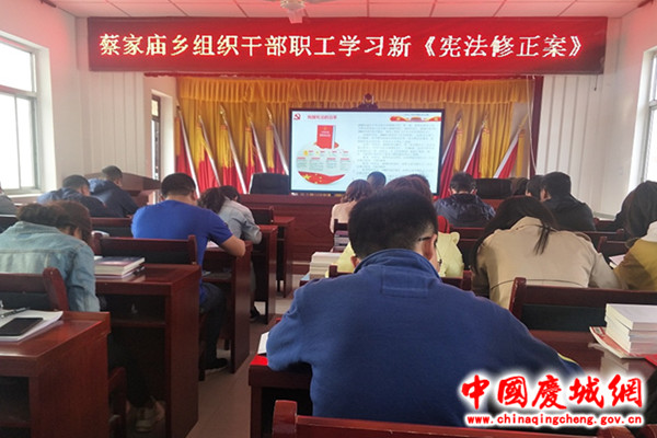 蔡家庙乡组织干部职工学习《宪法修正案》