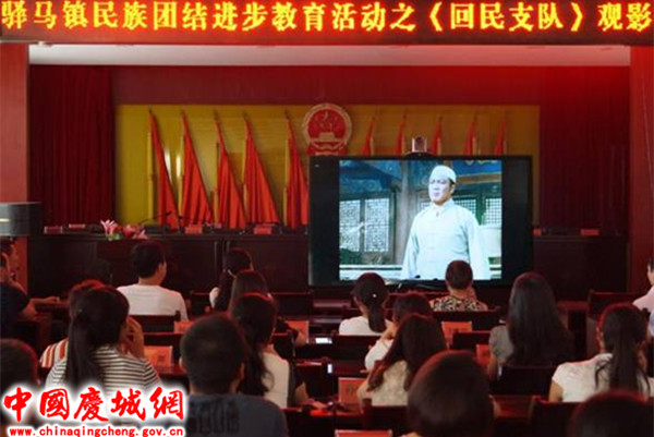 为全面创建民族团结进步示范乡镇,在全体干部中凝聚创建合力,5月29日,驿马镇组织全体干部观看红色经典影片《回民支队》。