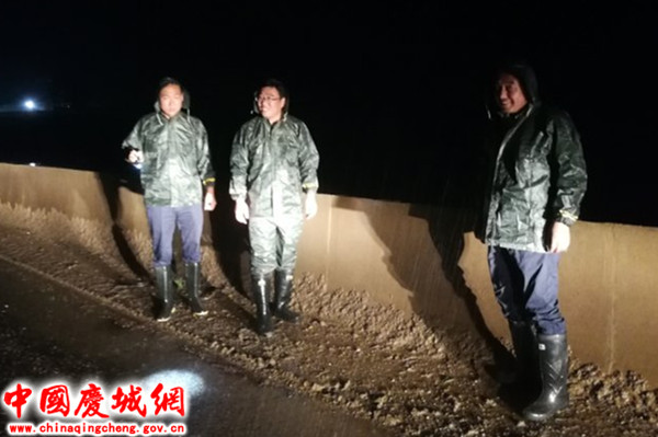 深夜坚守一线 冒雨排查险情