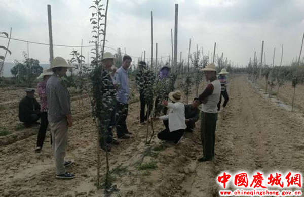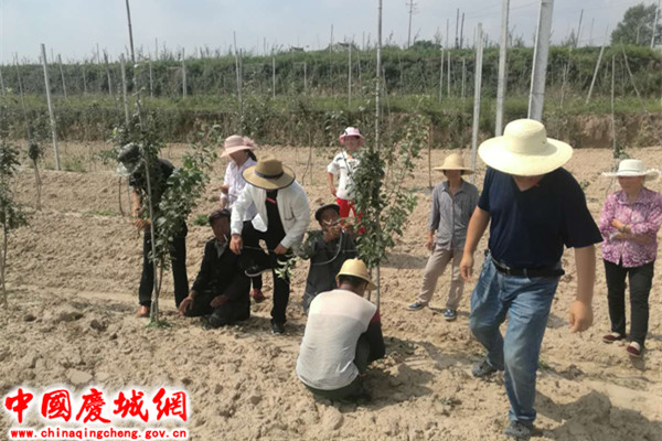 当前,正值果园管理的关键时期,为进一步巩固发展好苹果产业,促进脱贫攻坚,引导广大果农做好果园标准化、规范化管理,8月29日,蔡口集乡组织发展苹果产业的贫困群众21人,非贫困群众32人,在周家塬村南塬、西塬苹果栽植点举办了秋季果园管理工作现场培训活动。