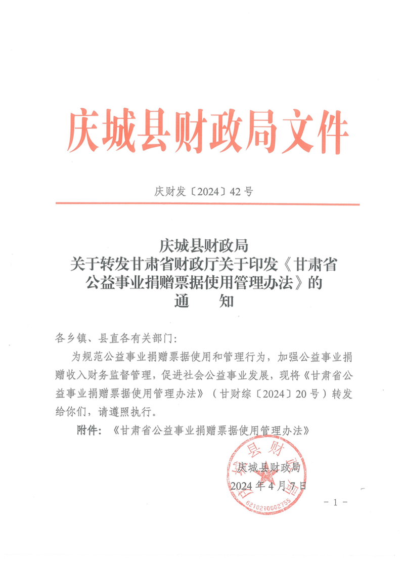 索引号: 621021/2024-00019 发布机构: 生效日期: 2024-04-07 废止日期: 文 号: 所属主题: 部门文件 庆城县财政局关于转发甘肃省财政厅关于印发《甘肃省公益事业捐赠票据使用管理办法》的通知(庆财发〔2024〕42号) 来源: 发布时间:2024-04-07 浏览次数: 次 【字体:小 大】 【打印正文】 分享到: 【字体:小 大】
