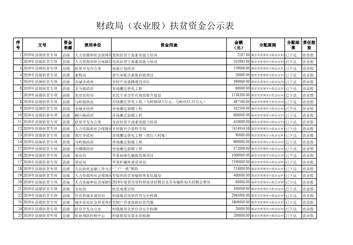 索引号: QC-CZJ-2019-00016 发布机构: 财政局 生效日期: 2019-06-20 废止日期: 文 号: 所属主题: 部门文件 庆城县财政局扶贫资金公示表格--农业股 来源: 发布时间:2019-06-20 浏览次数: 次 【字体:小 大】 【打印正文】 分享到: 【字体:小 大】